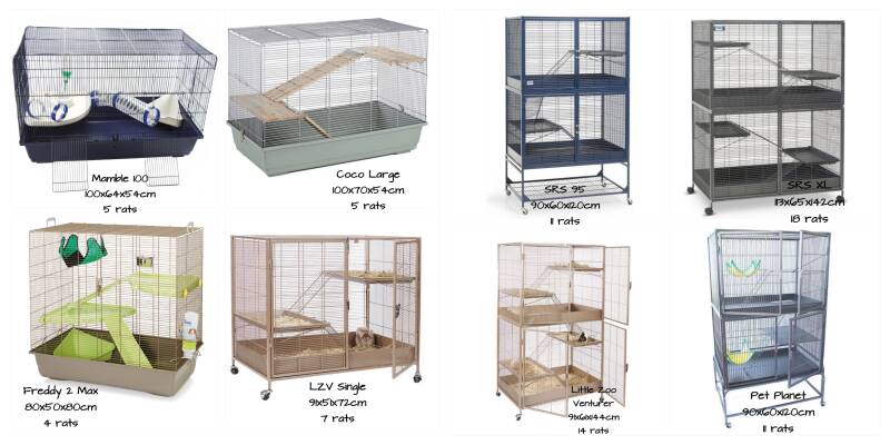 Cages need adequate floor space to allow the rats to exhibit these natural behaviours. Cages should meet the recommended minimum floorspace requirement of 50cm x 80cm.