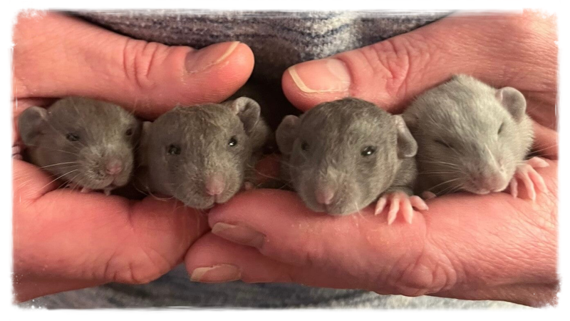 • Rivendell There's Something About Mary (Russian Silver Agouti doe) x Esprit Kozee (Russian Silver Dumbo buck)